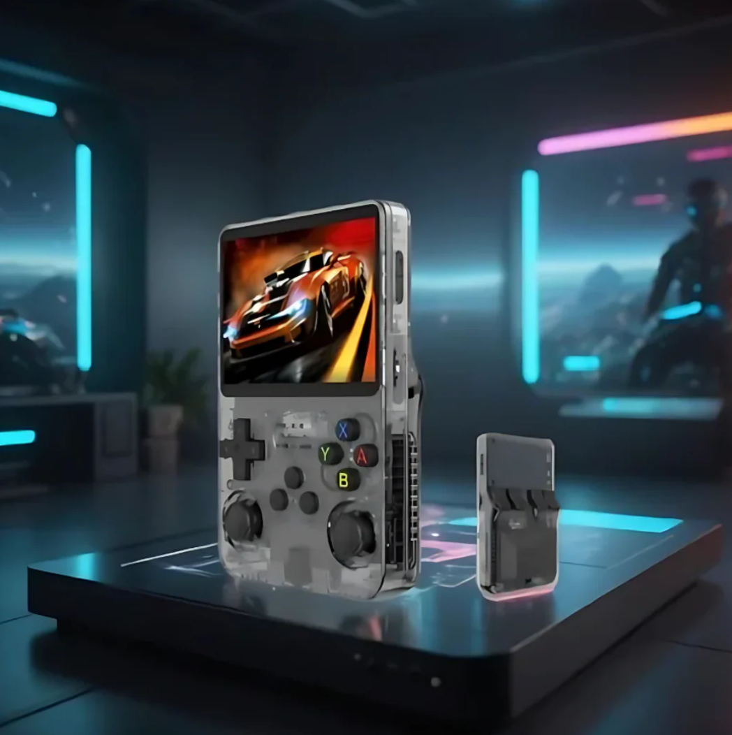 Key Features: ✅Precision Control: Dual analog joysticks + ergonomic button layout for enhanced gameplay. ✅Massive Game Compatibility: Built-in support for30+ emulators(PSP/GBA/NDS/N64/Arcade, etc.). ✅Portable Design: Compact size (image scale reference) with a vivid 3.5" display fits in any pocket. ✅Plug & Play: Pre-loaded with open-source OS – just add your ROMs and start playing!