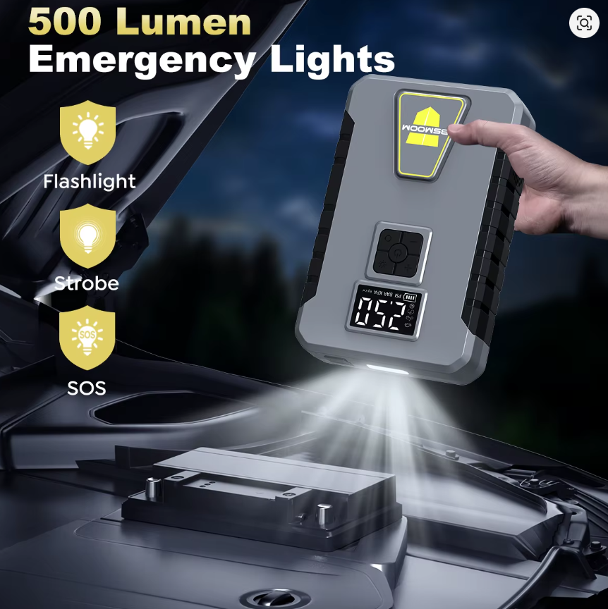 Portable Car Battery Jump Starter with Digital Display & Power Bank